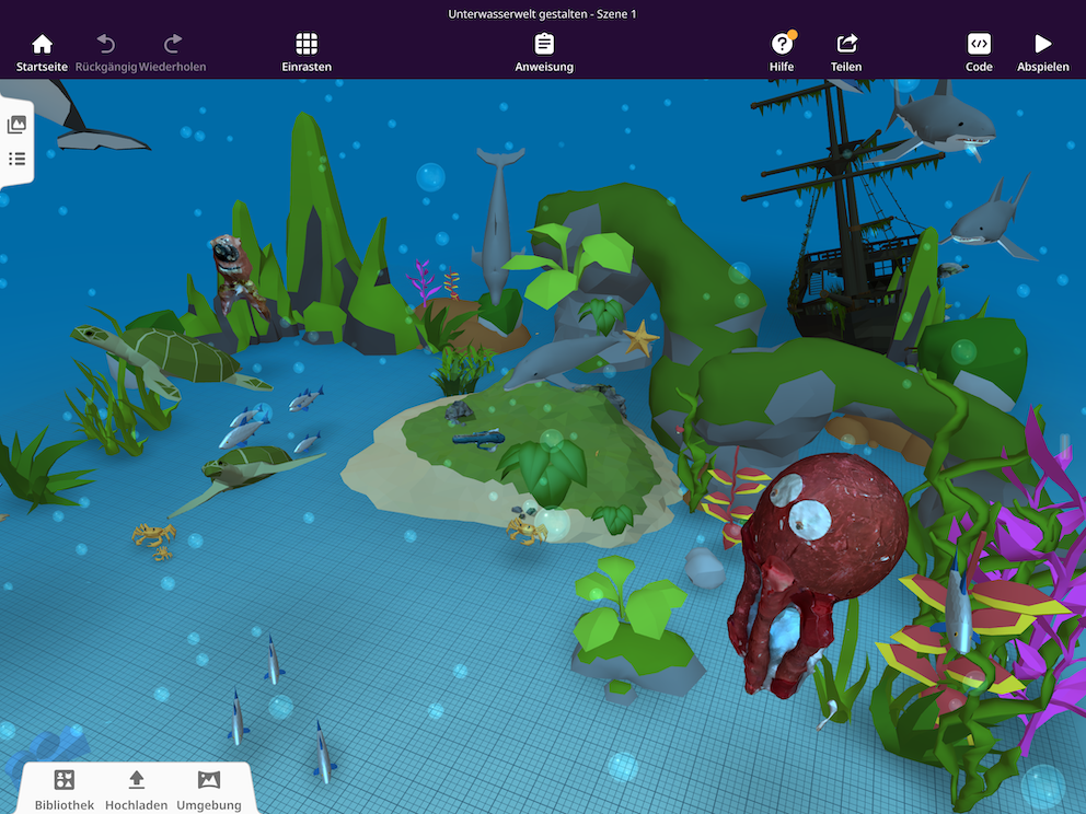 Hast du dich jemals gefragt, welche unbekannten Kreaturen sich in den Tiefen unserer Weltmeere verstecken? Schicke deine Vorstellungskraft auf eine Reise an diese verborgenen Orte. Aus verschiedensten Materialien nähen und bauen wir mysteriöse und fantastische Tiefseewesen, die wir mit Virtual Reality (VR) und Artificial Intelligence (AI) zum Leben erwecken. Die analogen Arbeiten werden mit der App Scaniverse in 3D-Modelle umgewandelt. In CoSpaces Edu gestalten wir virtuelle Unterwasserwelten, in denen die Kreaturen digital präsentiert werden. Zum Abschluss findet am Samstag eine Ausstellung der eigenen Arbeiten im Atelier Vom Pferd in Essen statt. Materialien und Technik werden gestellt. Die Teilnehmenden bringen ihre Ideen und Kreativität mit.